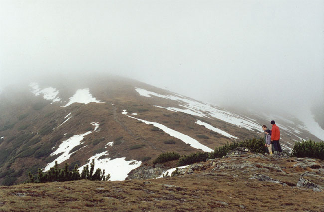 | A to už jsme na jižním hřebínku, táhnoucím se z Barance. Výška něco pod 2000, začínají se valit první mračné předvoje a vítr testuje vaše větrovky. Prozatím jsme stále optimisté. |